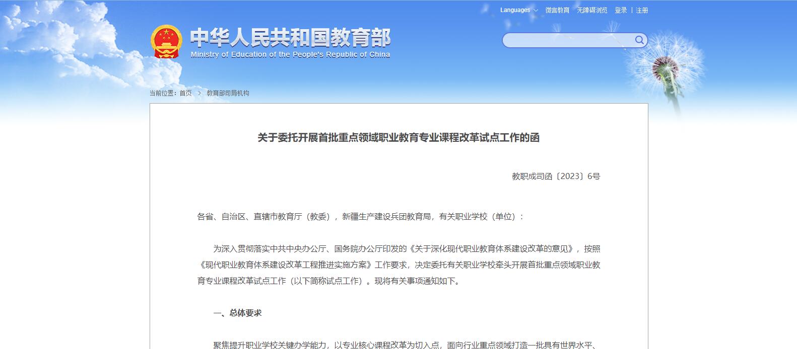 為深入貫徹落實(shí)中共中央辦公廳、國(guó)務(wù)院辦公廳印發(fā)的《關(guān)于深化現(xiàn)代職業(yè)教育體系建設(shè)改革的意見》,按照《現(xiàn)代職業(yè)教育體系建設(shè)改革工程推進(jìn)實(shí)施方案》工作要求,決定委托有關(guān)職業(yè)學(xué)校牽頭開展首批重點(diǎn)領(lǐng)域職業(yè)教育專業(yè)課程改革試點(diǎn)工作(以下簡(jiǎn)稱試點(diǎn)工作)?,F(xiàn)將有關(guān)事項(xiàng)通知如下。