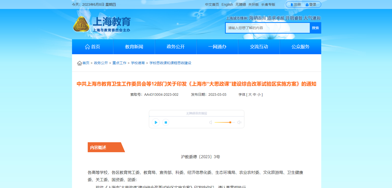 現(xiàn)將《上海市“大思政課”建設(shè)綜合改革試驗(yàn)區(qū)實(shí)施方案》印發(fā)給你們,請認(rèn)真貫徹執(zhí)行。