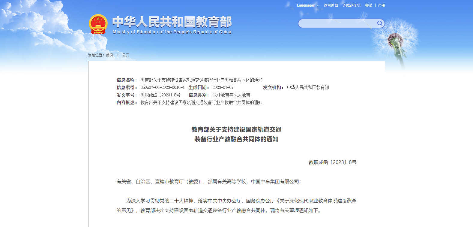 為深入學習貫徹黨的二十大精神,落實中共中央辦公廳、國務院辦公廳《關(guān)于深化現(xiàn)代職業(yè)教育體系建設改革的意見》,教育部決定支持建設國家軌道交通裝備行業(yè)產(chǎn)教融合共同體?,F(xiàn)將有關(guān)事項通知如下。